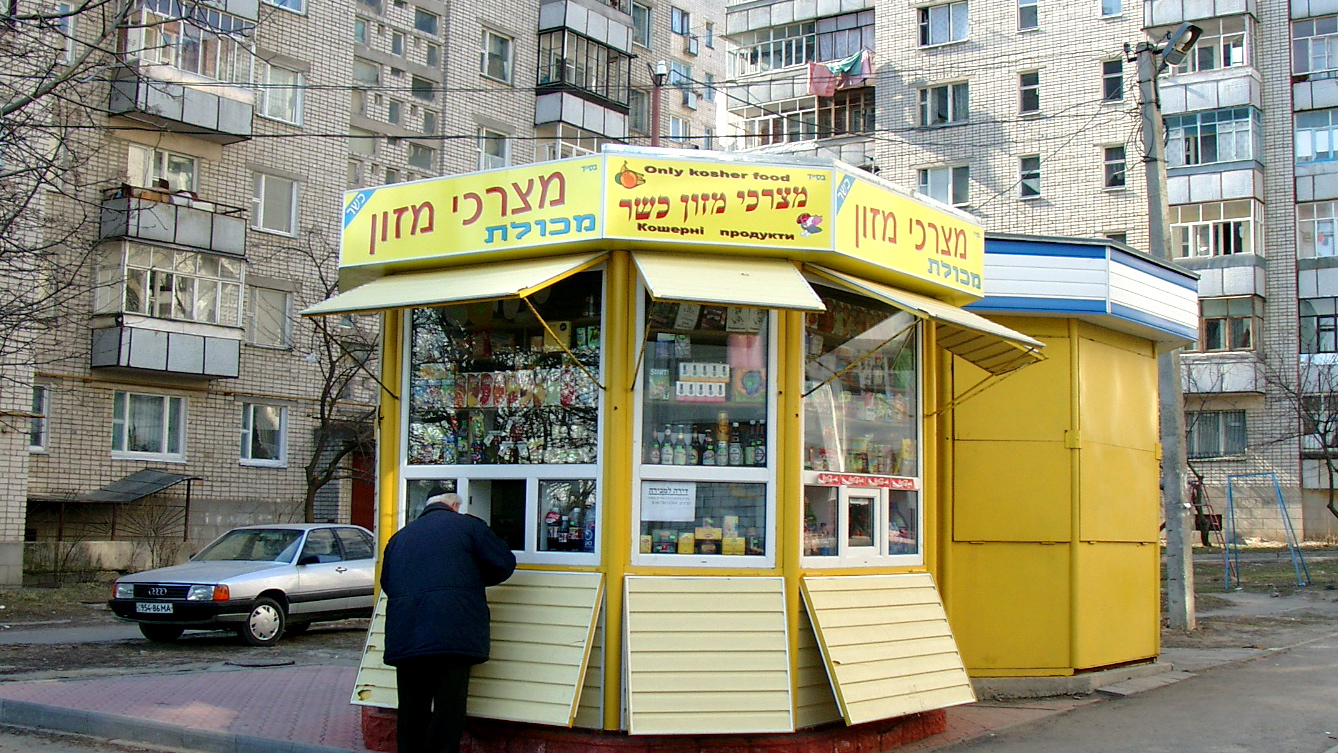 Before long, an enclave of modern high-rise apartment buildings and kosher food stores replace the old Ukrainian huts. “This must be the place”, we decide and step onto the pavement to the rhythmical sound of the dancing Jewish music.